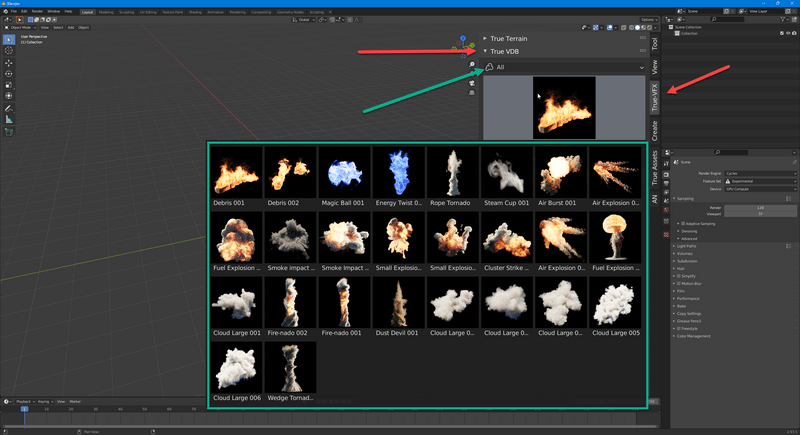 The TrueVDB addon can be found in the N panel in the 3D viewport, under the True-VFX tab. Follow these steps to use the addon: